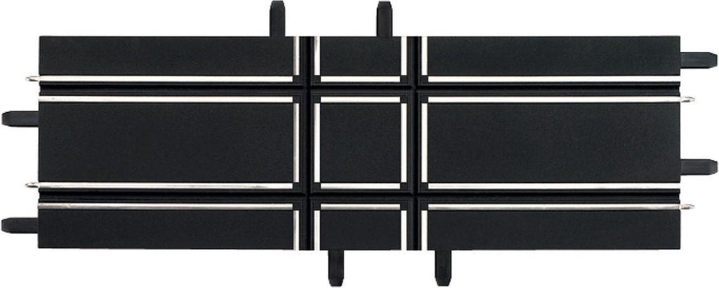 Voeg deze leuke kruising toe aan jouw eigen racebaan! De kruising zit verwerkt in één recht stuk. Hierop kun je twee baanstukken aansluiten, waardoor je een echte kruising hebt.