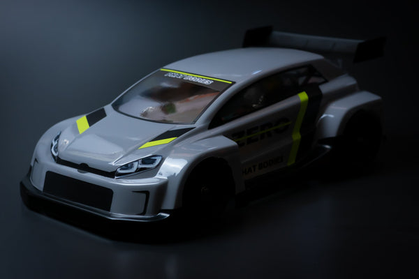 Bodyshell wordt ongespoten geleverd, trimmen en verven dient u zelf te verrichten.